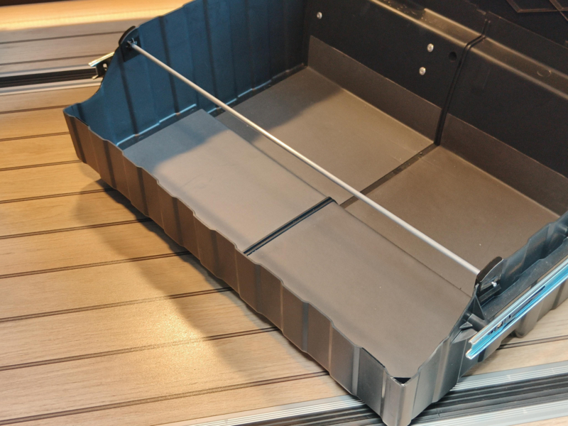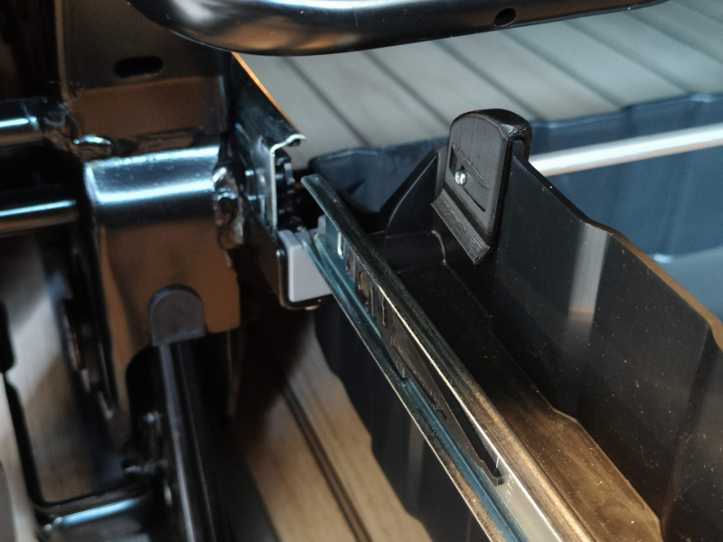 De banklade van de Marco Polo's kunnen bij gebruik weleens uit de laderails schieten. Oorzaak is de wat slappe constructie van de plastic lade.